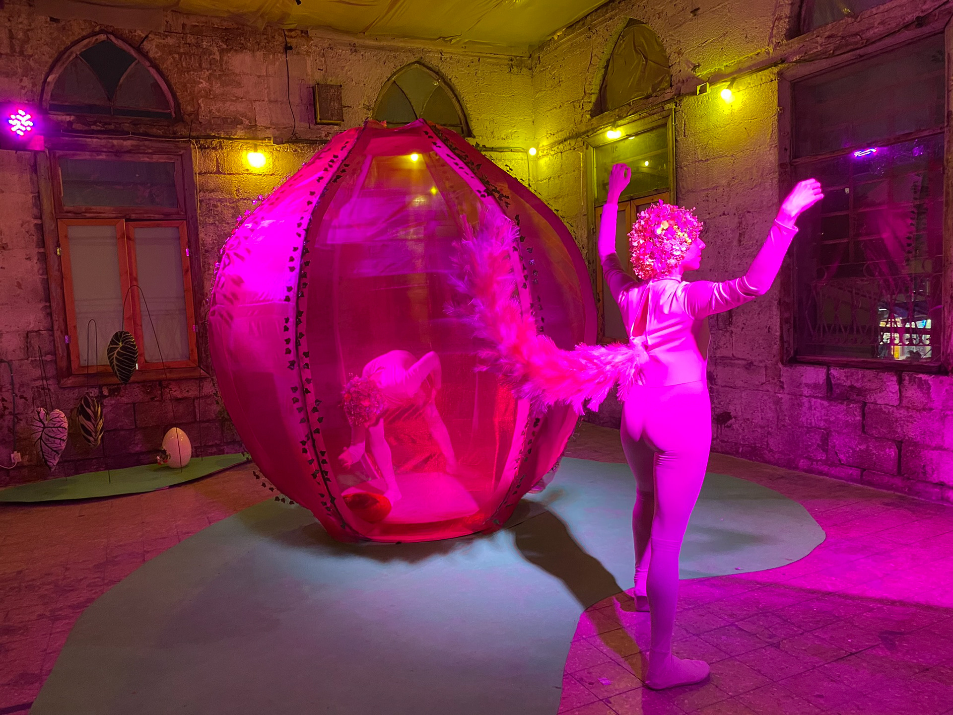 מכיוון שאין תחום מסוים שהוא הבמה והיא מתפרסת על 2 קומות של בניין המיועד לשימור, ללא חציצה בין השחקנים לקהל. בשילוב אלמנט הריקוד ואלמנטים של תנועה נוספים בחלל הם מייצרים תיאטרון חוויתי[2] שבו הצופה נע בין החללים השונים המהדהדים זה לזה במשחקיות בין השחקן לקהל מהחלל.[3] כשכל חלל יכול לעמוד בפני עצמו בנפרד אבל גם עובד עם יתר החללים ביחד.