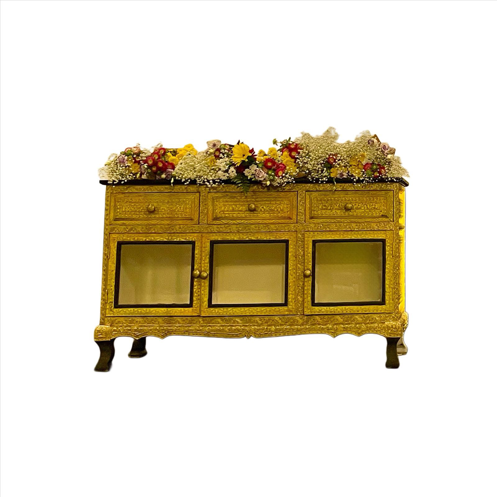 הרהיטים מבעל דירה ומקליניקה לריפוי, עלים צהובים מזויפים מהצגת התיאטרון הראשונה שעיצבתי בצוותא, החבל מאיזה אפליקציה שהתייבשתי, הבדים מהנחלה מעסקים של טקסטיל שסגרו, לצד עלים יבשים אמיתיים שקטפתי מכרם של איזה בניין מיועד להריסה פה, צבע זהב מהצפון, צבע שחור מהאוניבררסיטה, הפגנות פה, הפגנות שם, עשן לבן.